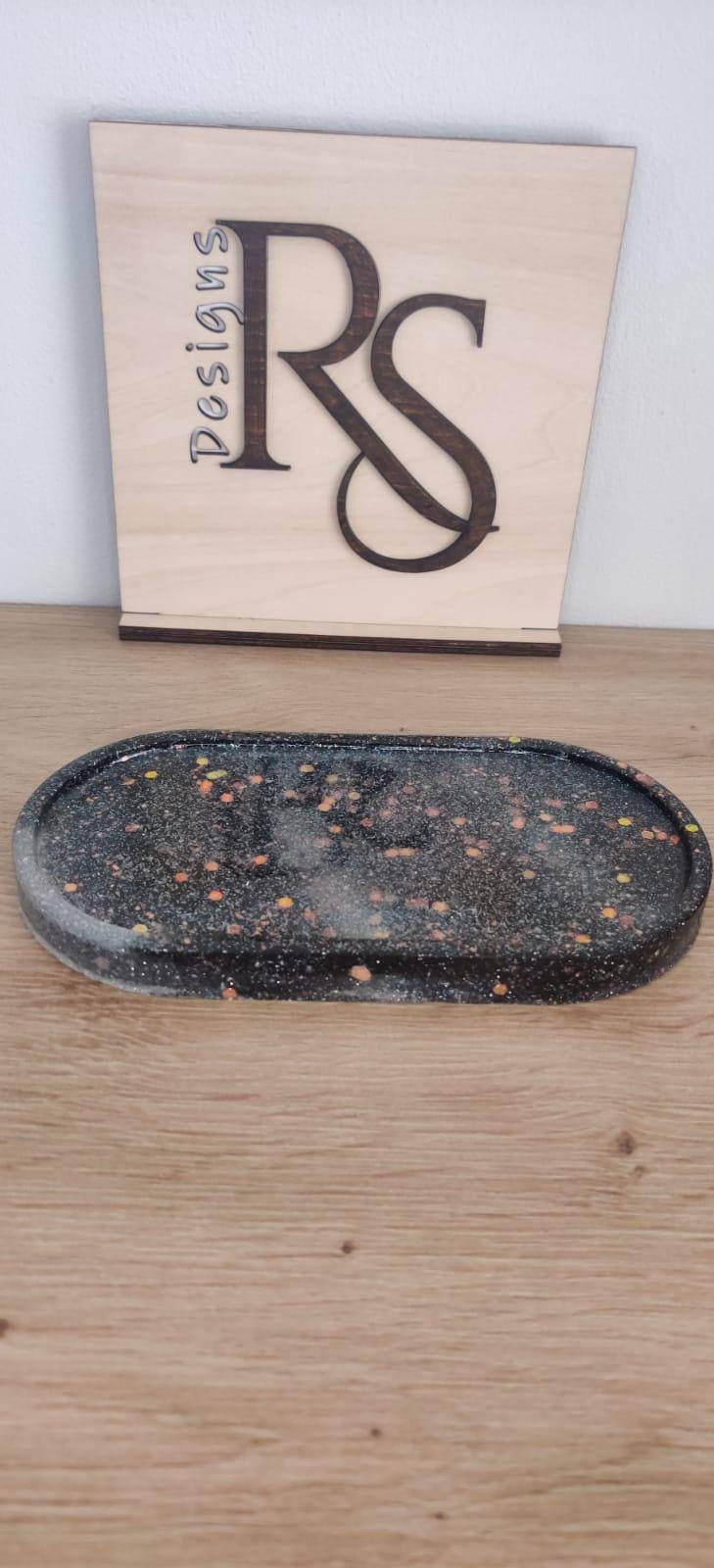 Handmade by RS Designs, this epoxy resin tray combines artisanal craftsmanship with contemporary aesthetics. Each piece is meticulously created using premium-grade materials, resulting in a sophisticated accent that elevates any interior space. The tray's compact dimensions—approximately 17.5 cm in length, 9 cm in width, and 1.5 cm in height—make it ideal for organising jewellery, keys, or decorative objects on desks, dressers, or entryway tables. Its versatile design also makes it an exceptional gift for those who appreciate handcrafted home accessories. As with all artisanal resin work, minor surface characteristics such as subtle ripples or occasional air bubbles may be present, adding to the authentic, handmade quality of each unique creation. These natural variations are testament to the careful, individual attention devoted to every piece.