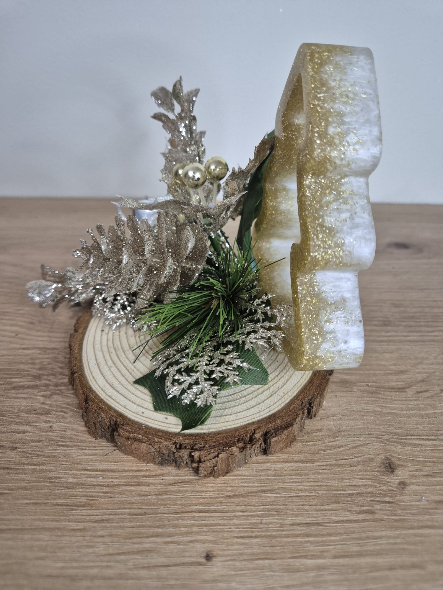 Crafted by hand with meticulous attention to detail, this festive centrepiece showcases a distinctive wooden base that brings warmth to your holiday setting.
